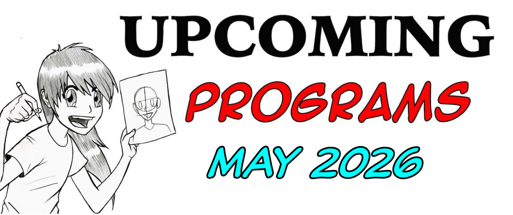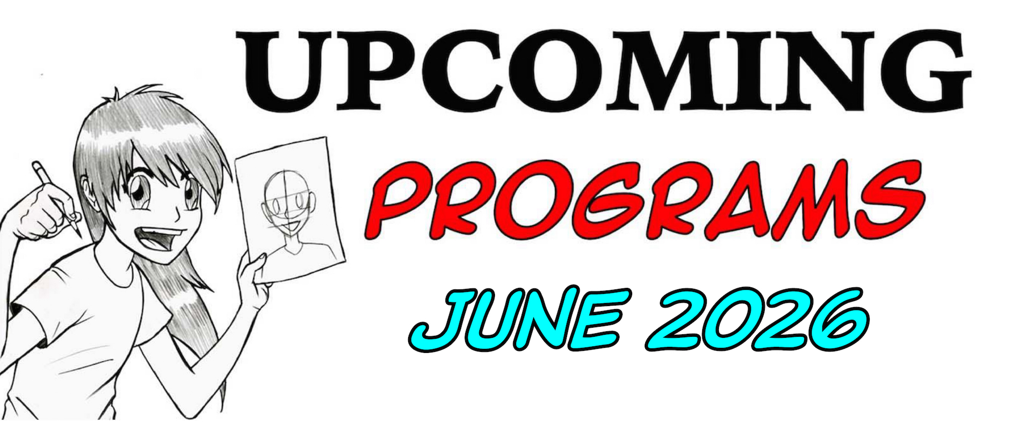 Join Carlos from 5:00PM -6:00PM and learn to draw your favorite anime character or create your very own from scratch, no drawing experience needed! All materials will be provided, this program is free and open to the public